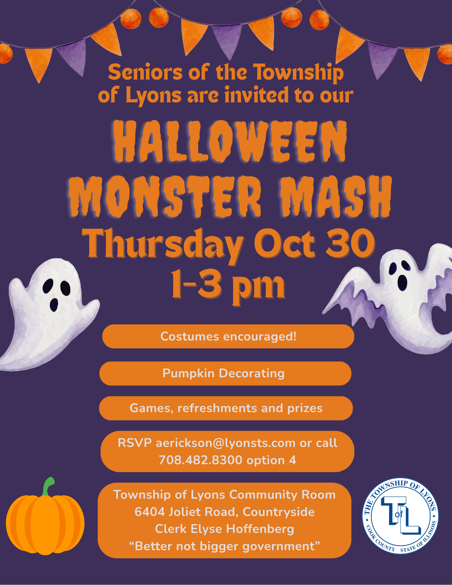 Come for a lively afternoon of games, refreshments and SPOOKY fun. Costumes encouraged but not required. Questions or RSVP aerickson@lyonsts.com or call 708.482.8300 option 4.