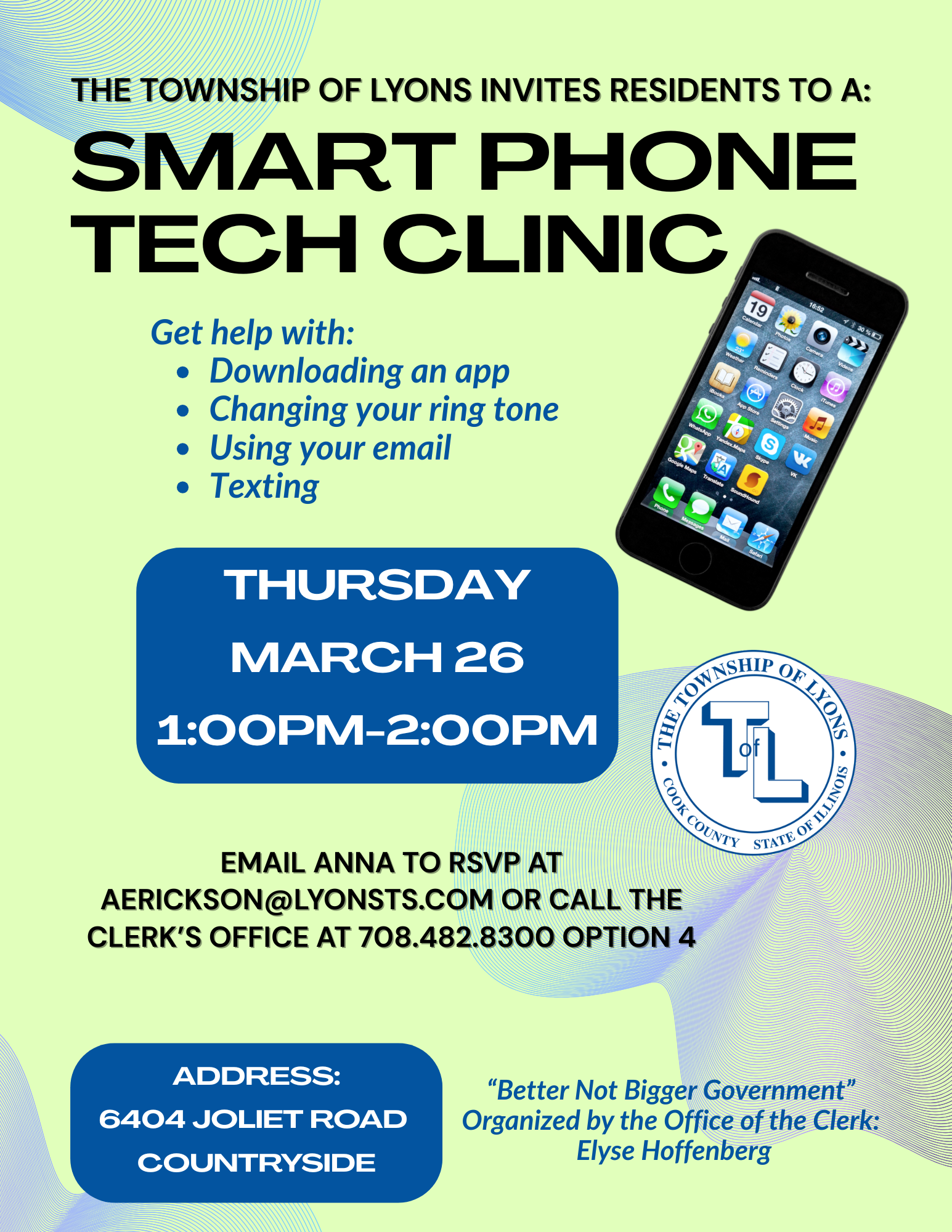 Need some pointers how to better use your smartphone? Come to this free event to learn new tricks! RSVP by calling 708.482.8300 option 4 or email aerickson@lyonsts.com